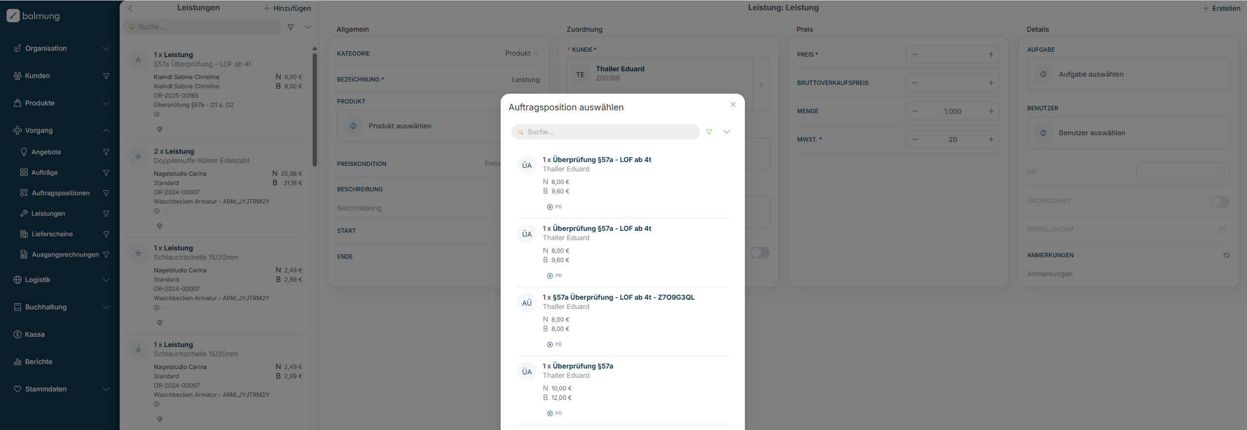 Wenn man aus einem Auftrag eine Aufgabe erstellt, wird man in die Aufgabenansicht weitergeleitet, jedoch wären hier automatisch hinterlegte Informationen zum Kunden und zur Auftragsposition sehr hilfreich. Diese sollten beim Anlegen der Aufgabe direkt übernommen werden, um manuelle Eingaben und mögliche Fehler zu vermeiden.